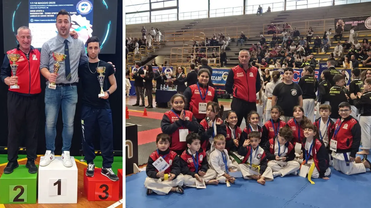 Le medaglie sono giunte copiose: nella categoria kumite under 10 femminile da cintura bianca a marrone ha vinto la medaglia d’oro Viviana Costanzo, che ha preso anche la medaglia d’argento per il palloncino fanciulli gialla-arancio e la medaglia di bronzo nel kata fanciulli gialla-arancio, mentre sul terzo gradino del podio del kumite femminile under 10 è salita Delia Bova, classificatasi prima nella gara del palloncino fanciulli bianche e prima nella gara del kata fanciulli femminile bianche. Primo posto e medaglia d’oro nella categoria under 10 maschile per Joseph Barritta, che ha vinto anche la gara del palloncino fanciulli verdi-blu-marroni e la gara del kata per le cinture verdi-blu-marroni. Secondo posto e medaglia d’argento per Domenico Famà nella gara del palloncino bambini e terzo ex aequo e medaglia di bronzo per Cristian Auteri. Sempre nel palloncino, categoria fanciulli, terzo ex aequo per Leonardo Ostone, arrivato terzo anche nel kata fanciulli cinture bianche. Due podi tutti per Energia e Ritmo nelle categorie palloncino ragazzi femminile: nella categoria cinture bianche primo posto per Maria Laura Ortelio, secondo per Amelia Ostone e terzo per Tirsa De Seta, mentre per la categoria gialla-arancio primo posto per Chloe Tavella e secondo per Francesca Famà, che si sono sfidate in gara secca. Le ragazze si sono ripetute nel kumite categoria ragazzi femminile, in varie fasce di peso: argento per Ostone e bronzo per Tavella, terzo gradino del podio per De Seta, primo per Maria Laura Ortelio e terzo nella medesima fascia di peso per Famà.