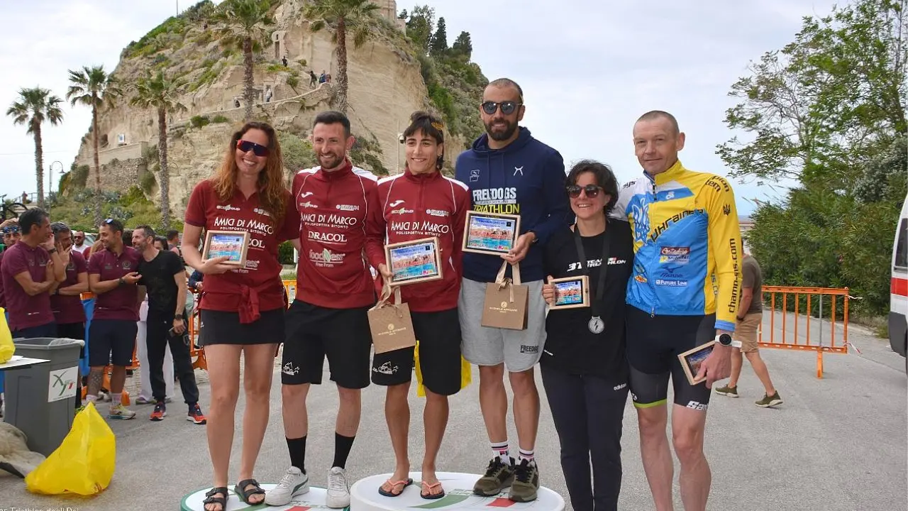Numerosi i riconoscimenti assegnati: ai frazionisti più veloci, ai vincitori di categoria, alla squadra più numerosa (ASD Triathlon Reggio Calabria) e a quella col miglior punteggio (ASD Amici di Marco). Premi speciali anche per i tre ospiti internazionali.