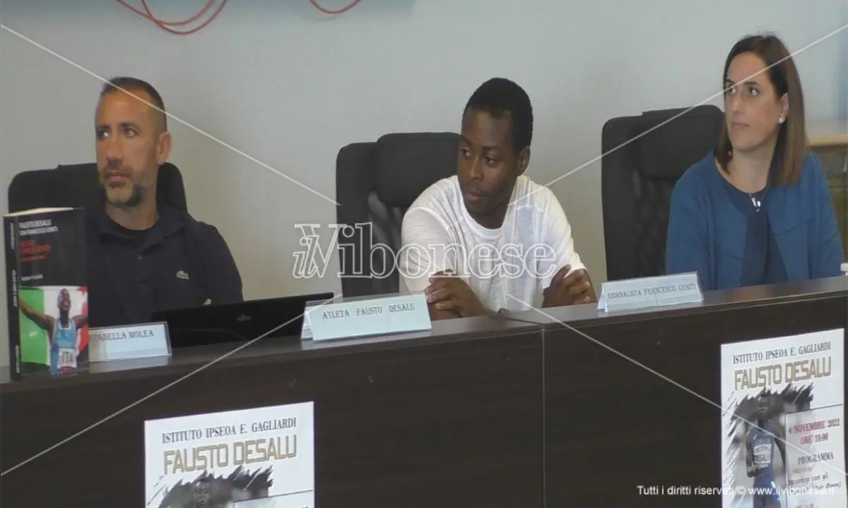 Un’eccellenza italiana all’interno di un’eccellenza scolastica. Fausto Desalù ha portato la sua esperienza. Di atleta vincente, ma anche di uno che ce l’ha fatta, superando numerosi ostacoli, nello sport e nella vita. Ha fatto parte della staffetta degli invincibili, quella che a Tokyo 2020 ci ha fatto sognare, conquistando una storica medaglia d’oro. Nel rivolgersi ai giovani, ha dispensato consigli e suggerimenti. Prima ancora della finale della 4×100 al giornalista calabrese, Francesco Ceniti, da anni una delle firme illustri della Gazzetta dello Sport, nonché autore di diversi volumi, era venuta in mente l’idea di racchiudere in un libro (“Veloce come il vento. La mia vita di corsa”, ed. Baldini&Castoldi) la storia di Desalu. Una storia fatta di integrazione e di sport, di caparbietà e di sacrifici. Ed è anche di questo che si è parlato in occasione dell’incontro tenutosi a Vibo, all’Istituto professionale di Stato, con gli studenti delle quinte classi.