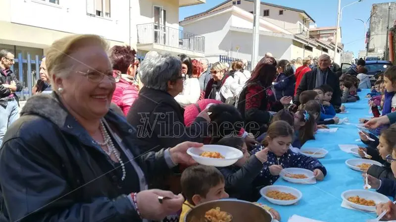 In molti centri della Calabria, in occasione di tale festività ancora oggi viene portata avanti la tradizione di cucinare pasta con i ceci ed offrirla alla comunità, in ricordo di quando lo si faceva per i poveri, donando loro un pasto caldo e nutriente. In alcuni paesi ancora oggi vengono invitati tre poveri – in mancanza anche tre amici che volentieri si offrono – in memoria, appunto, della famiglia di Betlemme. Così, anche quest’anno a Pizzo, grazie all’impegno dei confratelli dell’Arciconfraternita del Santissimo nome di Maria, meglio conosciuta come chiesa di San Sebastiano, 18 marzo, vigilia di San Giuseppe la tradizione della pasta con i ceci offerta ai fedeli è stata rispettata. L’avvenimento si è ripetuto, come ogni anno oramai da diversi secoli, coinvolgendo una nutrita e vociante folla di credenti già in fila da qualche ora, ognuno con un tegame in mano per portare a casa la saporita pietanza o per consumarla sul posto ancora fumante. Allo scoccare della mezza, dopo che il parroco, don Salvatore Santaguida, ha benedetto il preparato, è iniziata la distribuzione.