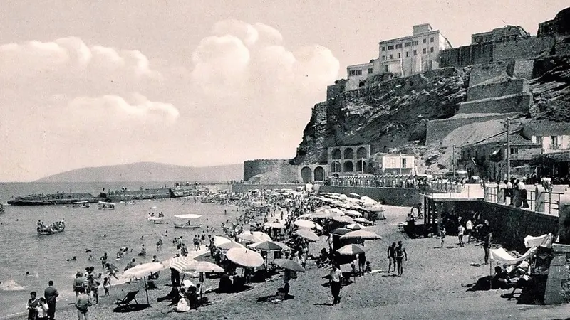 Nei primi anni del dopoguerra, le spiagge erano tutt’altra cosa rispetto a quelle di oggi. Nelle spiagge non accadeva ciò che invece ai giorni nostri accade normalmente: uomini e donne, insieme, stesi al sole “nudi, o quasi” se non per pochi centimetri di costumini a coprire “le vergogne”. A quei tempi vi erano spiagge per uomini e spiagge per donne. Sull’attuale statale 522, la via Riviera Prangi, vi era l’imbocco che conduceva alle spiagge dei Prangi e di Centofontane. Superata la linea della ferrovia, il sentiero si ramificava ed una guardia municipale, posta all’incrocio, smistava il traffico: le donne e i bambini da una parte, gli uomini dall’altra. Il fidanzatino, o l’aspirante tale, che sognava di ammirare la propria bella in costume da bagno – una lunga sottoveste di spesso cotone – doveva raggiungere la vicina spiaggia a nuoto e, al riparo degli scogli, di nascosto dalle altre donne che, nel caso contrario, avrebbero immediatamente dato l’allarme. Era l’unico modo per riempirsi gli occhi della sua bella e spedirle messaggi. Spesso accadeva che l’ardito spasimante veniva scoperto e lì erano dolori, specie se capitava tra le mani delle più anziane.